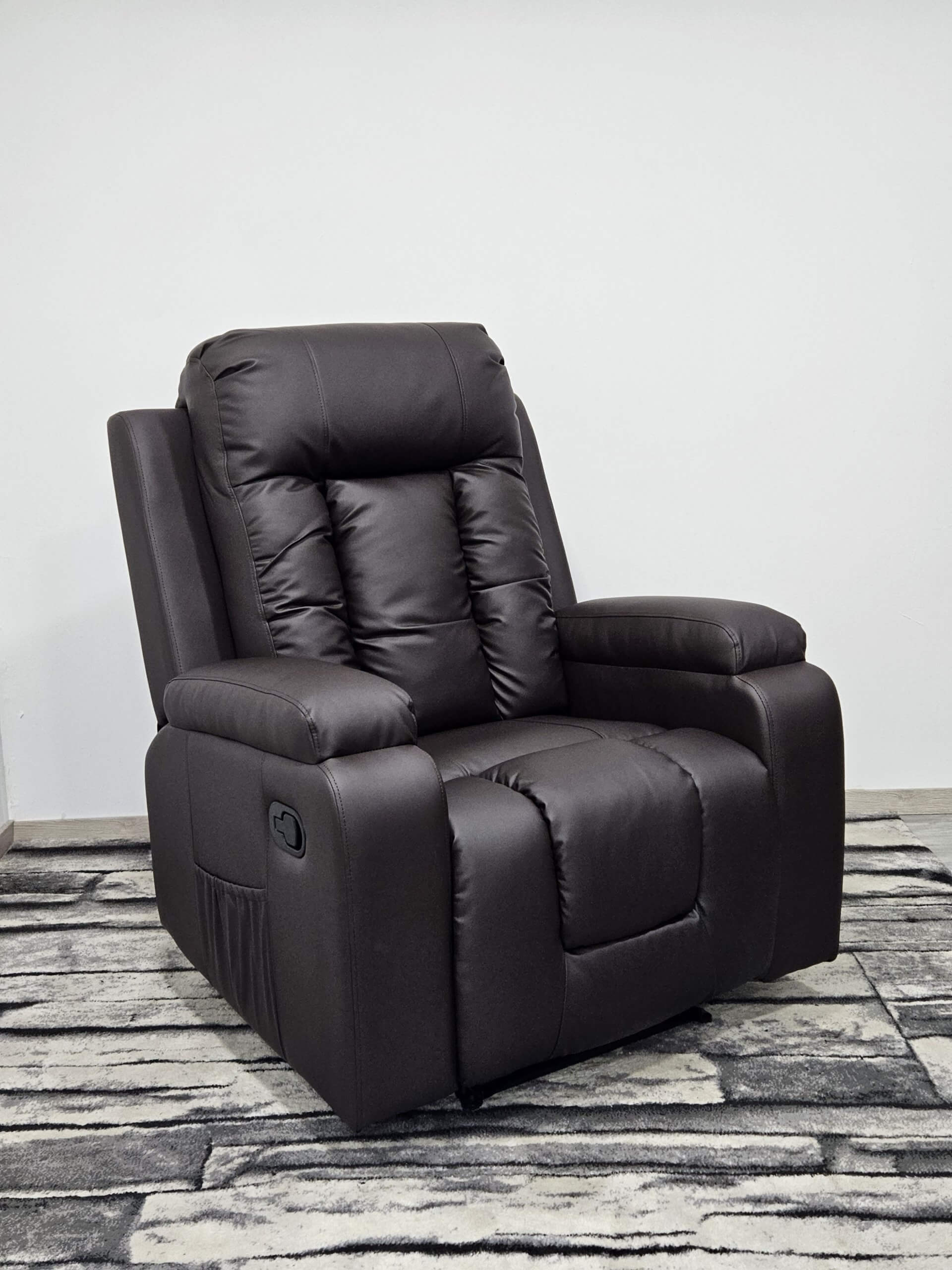 • כורסא אורטופדית מעור הכוללת ריקליינר.
