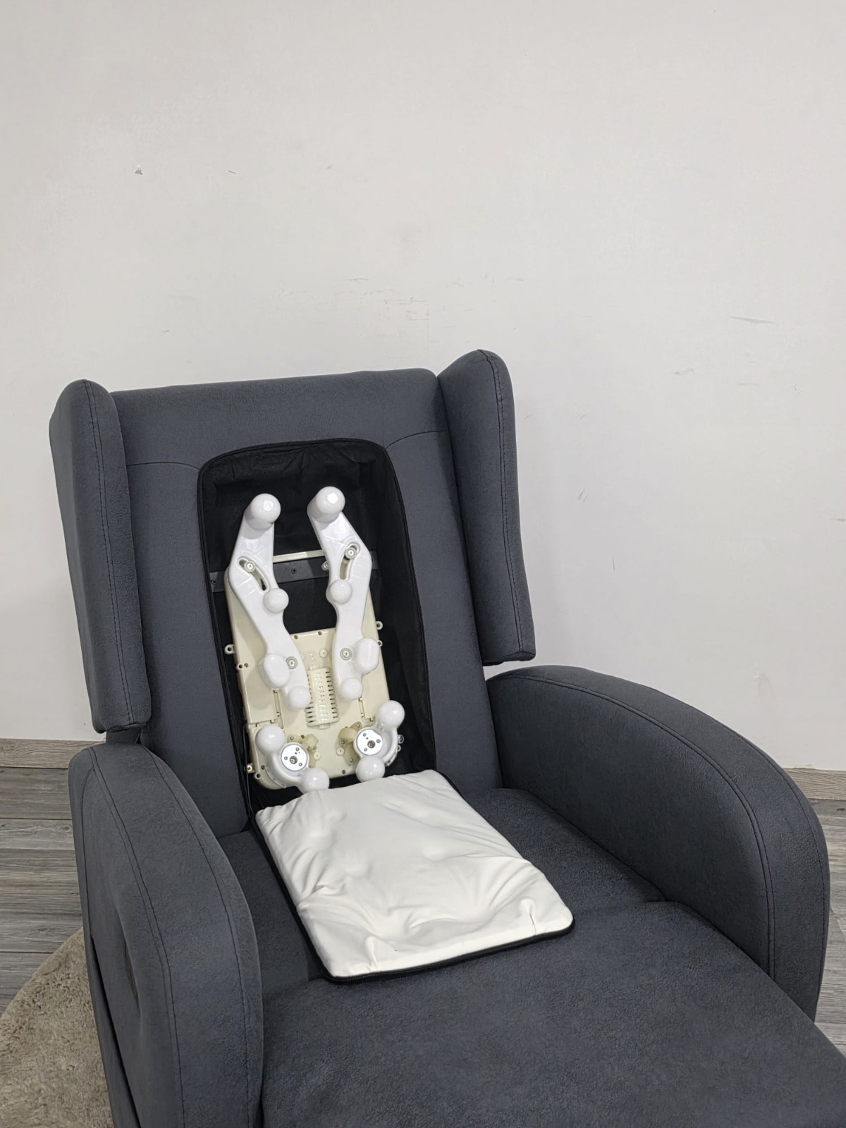 ניתן לשבת על הכורסא ללא מגע עם מערכת העיסוי.