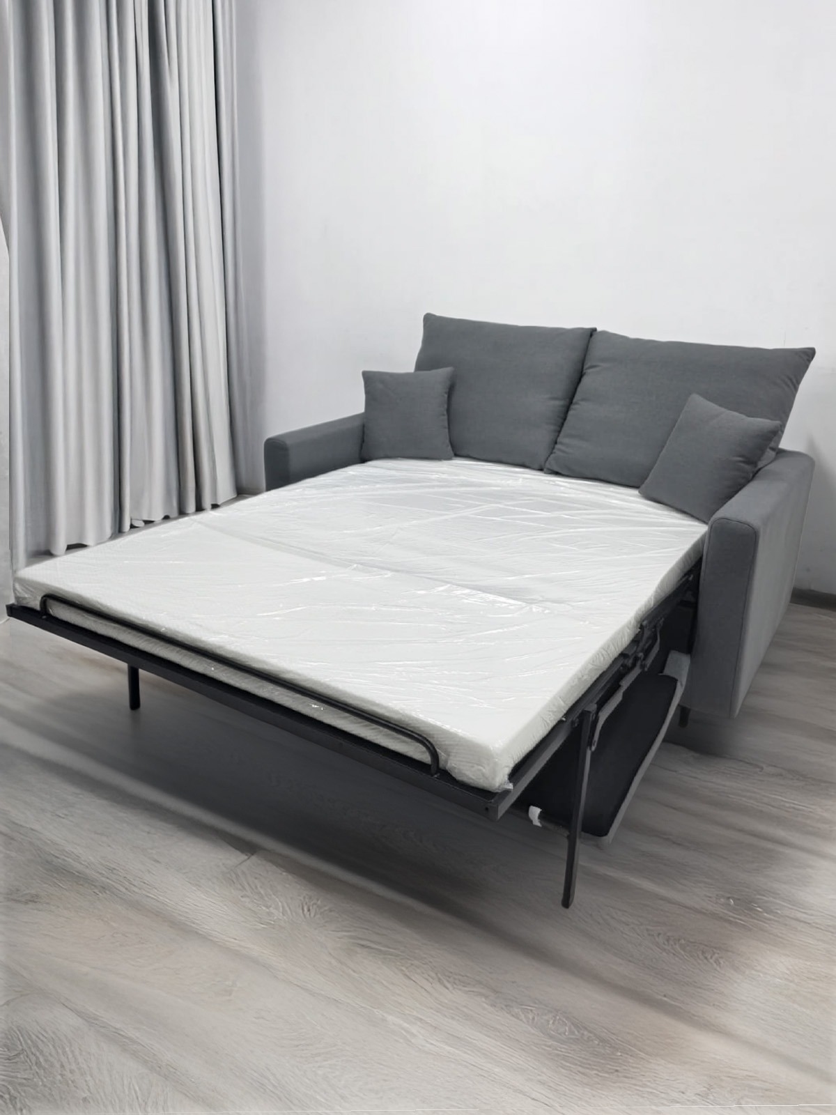 הספה עשויה מעץ מלא וכוללת מנגנון ההופך אותה למיטה וכולל מזרן מותאם.